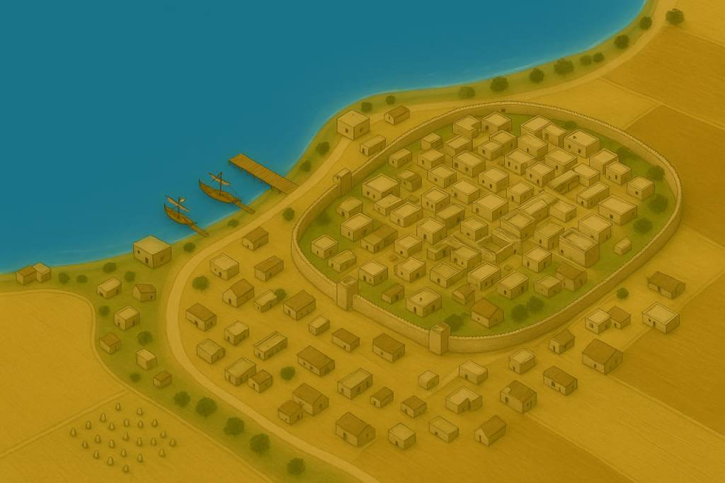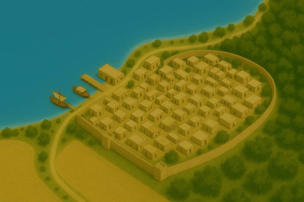 Archaeological and geomorphological evidence suggests the port included mooring facilities, storage areas, and access routes leading directly into the settlement’s industrial and residential zones.